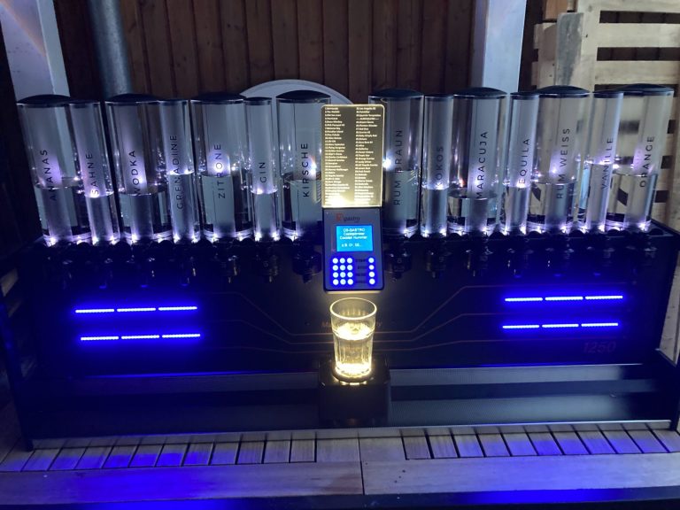 Hier bieten wir unsere Cocktailmaschine mit 60 integrierten Cocktails an. Die Zutaten in die Glasbehälter füllen, Cocktail auswählen und Start drücken. Jetzt fährt die Maschine alle Stationen zu dem ausgewählten Cocktail ab. Dazu bekommt ihr Cocktailkarten, damit eure Gäste sich Ihren passenden Cocktail aussuchen können. Die Standartkarte hat 34 mit Alkohol und 26 Alkoholfreie Cocktails. Schreib gern eine Whatsapp und ich sende ein Video. Auf wunsch können auch Zutaten gewechselt werden. Ihr bekommt alle Zutaten im Getränkehandel vor Ort, oder wir liefern alles. Optional könnt ihr auch eine Eiswürfelmaschine und eine kleine Obstbar dazubuchen.